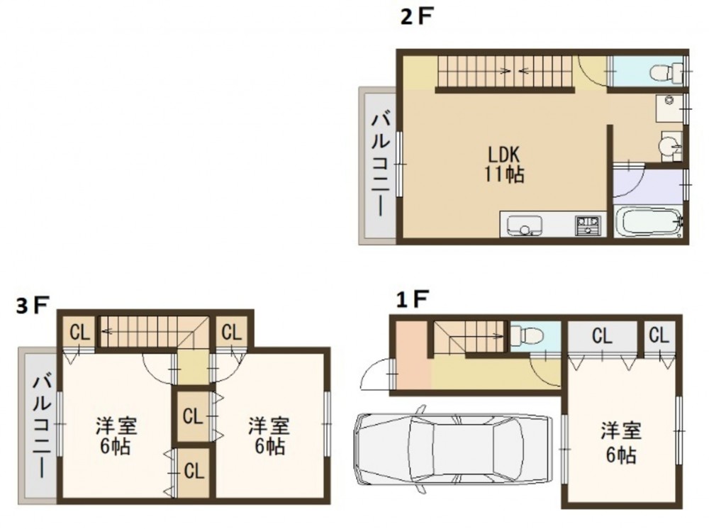 大阪市鶴見区茨田大宮、中古一戸建ての間取り画像です