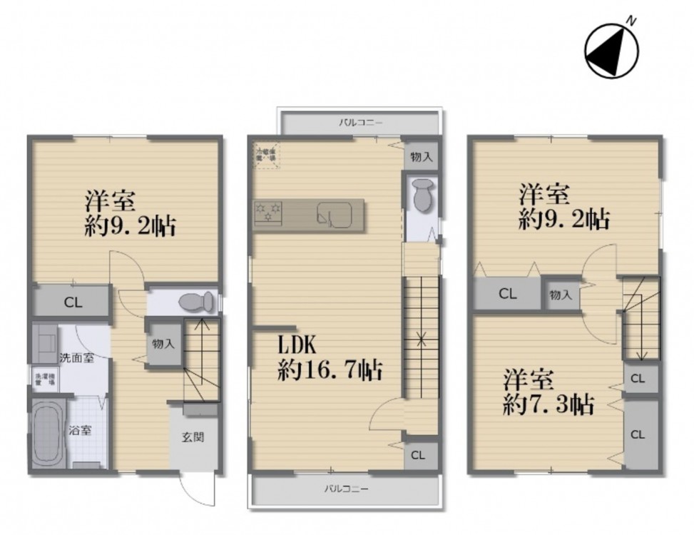 ☆木造3階建て3LDK