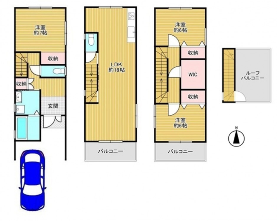 - システムキッチン、洗浄便座、追い焚き、ルーフバルコニー、ウォークインクローゼット、モニタ付インターホン、ペット可、1BOX駐車可、トイレ2箇所