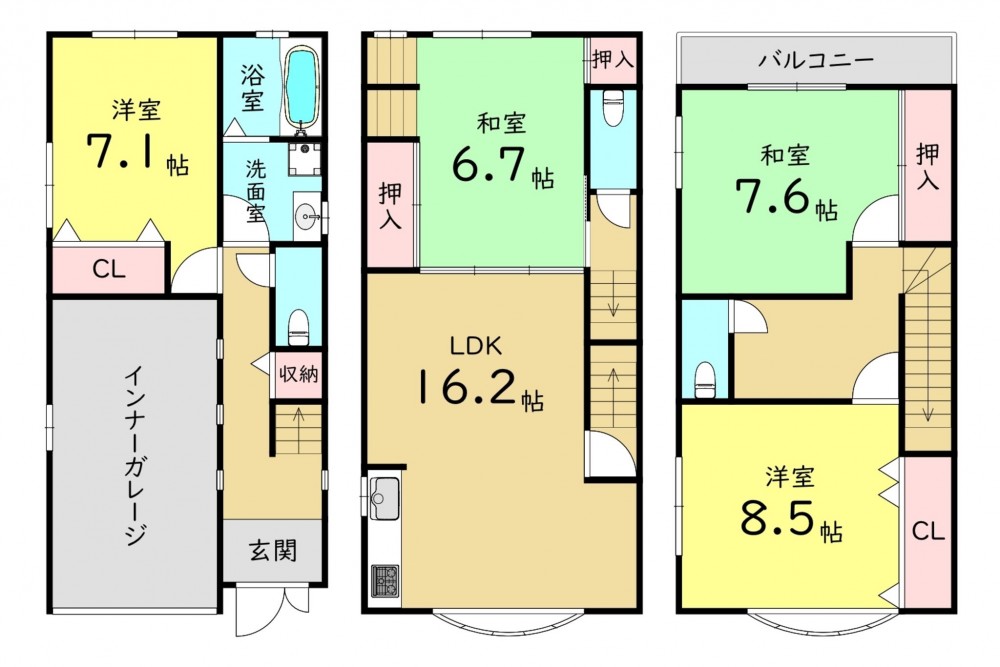 ☆鉄骨造3階建て4LDK