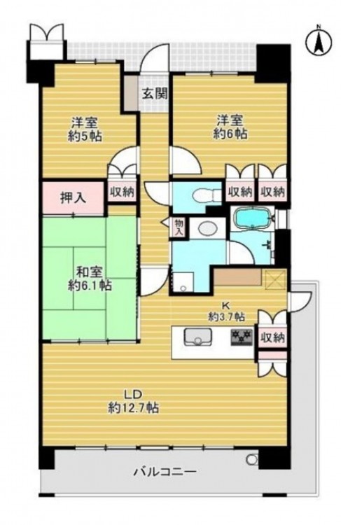 ☆2面バルコニーでキッチン横に便利な勝手口付き