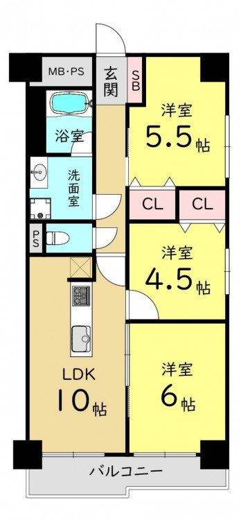 ☆角部屋の南向きバルコニーで日当たり&通風良好