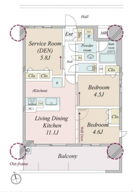 - バルコニー方向